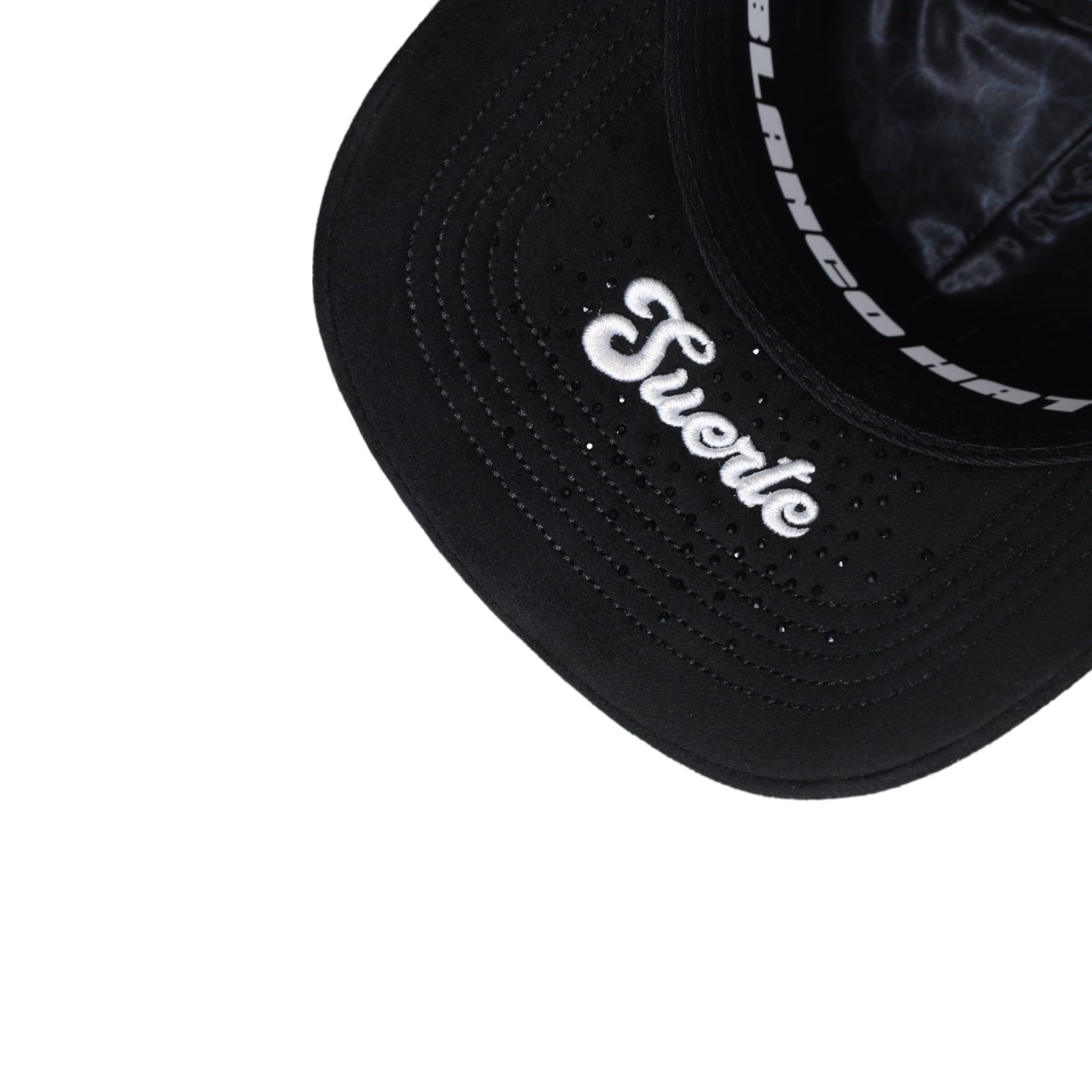 - Suede brim with a soft cotton crown